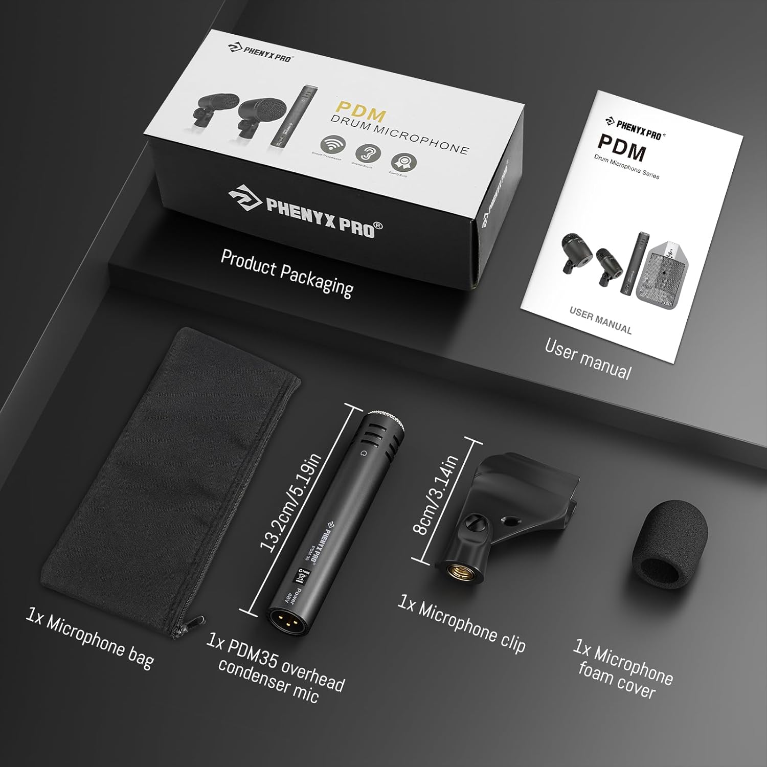The Phenyx Pro PDM35 is an overhead condenser microphone designed for capturing the nuanced sounds of hi-hats, percussions, and string instruments. It features a cardioid polar pattern for focused sound capture and a wide frequency response for detailed audio reproduction. This manual provides essential information for the proper setup, operation, and maintenance of your PDM35 microphone.